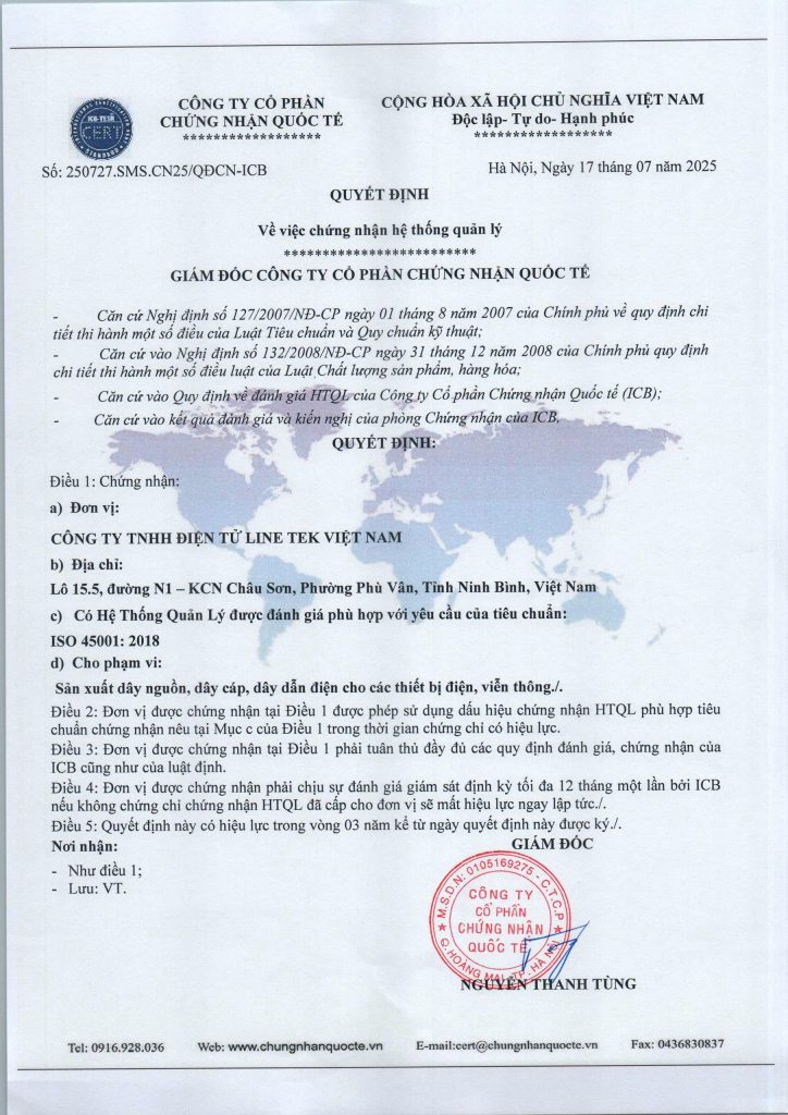 CÔNG TY TNHH ĐIỆN TỬ LINE TEK VIỆT NAM