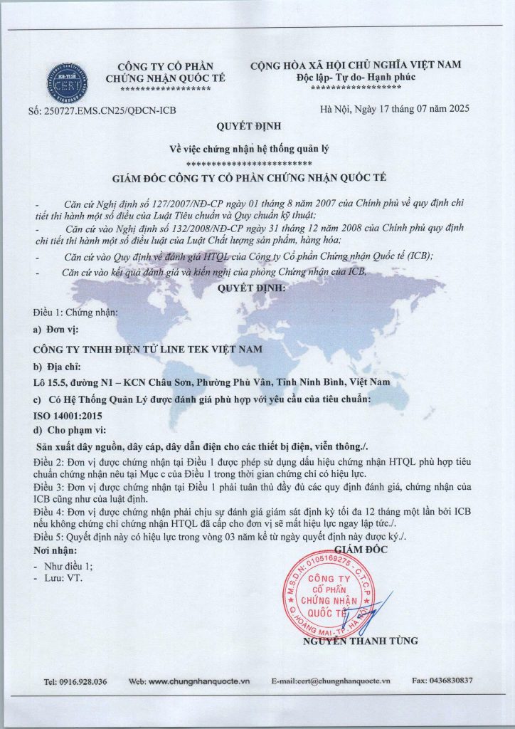 CÔNG TY TNHH ĐIỆN TỬ LINE TEK VIỆT NAM